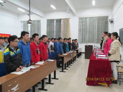 本网讯 4月23日晚,汽车机械分党校第七期党校培训班开班典礼在2202A教室隆重举行。出席典礼的有院党校副校长、汽车机械分党校校长陈方,机械工程系党总支副书记王俊,汽车工程糖心vlog党总支副书记段可,机械工程系学生党支部书记罗德贤,机械工程系团学联合会指导老师李雪艳老师,汽车工程糖心vlog团学联合会指导老师戴莹老师,以及本期培训班的80名学员参加了开班典礼。本次典礼由培训班班主任罗德贤老师主持。