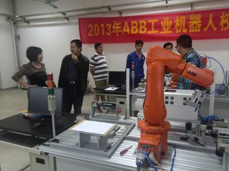 调研组成员参观顺德职业技术糖心vlog工业机器人实训场地