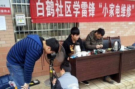 为了更好的弘扬雷锋精神,进一步提升我院学生的思想道德水平和服务大众意识,3月5日,我院团委组织学生志愿者来到白鹤小区,开展学雷锋“小家电维修”活动。