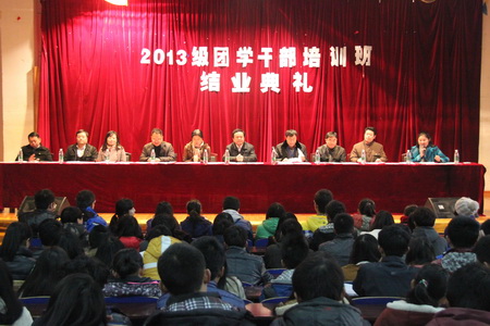1月9日,2013级团学干部培训班结业典礼在大学生活动中心举行。出席结业典礼的有院党委副书记周立华、学生处处长苗治田、学生处副处长梁艳、团委副书记黄敏、各系党总支书记以及2013级团学干部培训班全体学员。典礼由担任此次团学干部培训班班主任的梁艳主持。