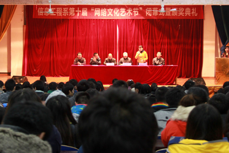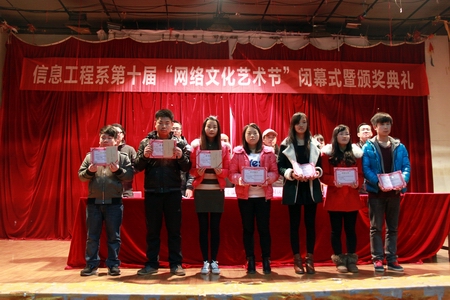 12月19日晚,信息工程系第十届“网络文化艺术节”闭幕式暨颁奖典礼在大学生活动中心隆重举行。信息工程系相关负责人及老师、辅导员和全体学生参加了本次活动。