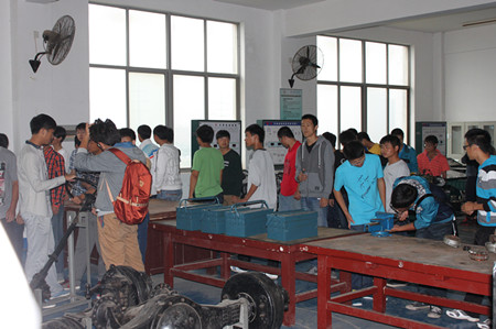 各专业新生在专业老师和辅导员的带领下分别参观了汽车实训室、液压实训室、模具拆装实训室、快速成型实训室、注塑冲压实训室、机加工焊接实训室以及长沙第三机床厂等实训场地。