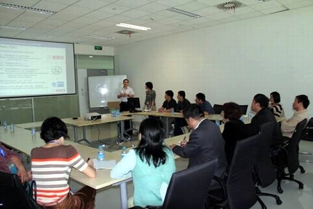 博世公司的商务部副总裁Mr Kretzschmar、博世汽车人力资源部李兆芳部长、TAG项目负责人Mr Goolze等热情接待了我院老师。Mr Goolze向我院老师们介绍了博世公司的TGA项目,包括TGA的历史及TGA中心在中国的发展现状、其教育体系、长沙TGA中心的建设情况,并分析了TGA模式的优势及特色。随后双方就2013年博世订单班的招生计划、人才培养方案的修改、AHK认证考试、专业教师的暑期顶岗实践等问题进行了详细的商讨,并达成共识。我院毕业生代表许道义、邹银沙从专业技术岗位及生产管理岗位对我院博世订单班课程设置、职业技能和职业素养培养等方面提出了建议。随后调研组一行参观了博世汽车部件(长沙)有限公司的SG、101ED厂房,了解了起动机、发动机的生产,雨刮器、马达等汽车部件的生产过程。